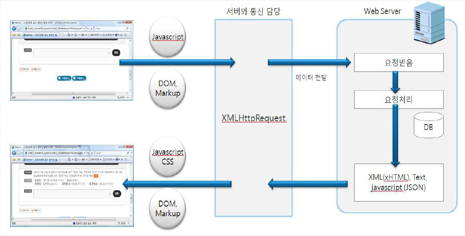 - XML, JSON : 서버와 비동기적 데이터 교환