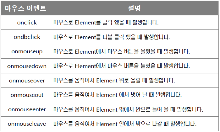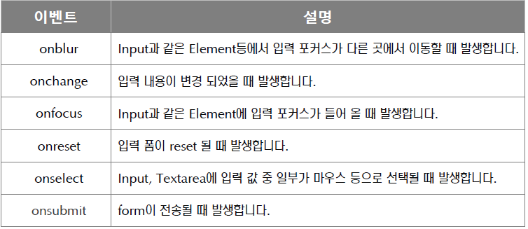 - 여러 웹 브라우저에서 가장 안정적으로 동작하는 이벤트
