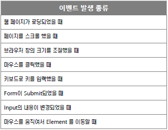 - JavaScript를 사용하여 DOM에서 발생되는 이벤트를 감지하고 대응 가능