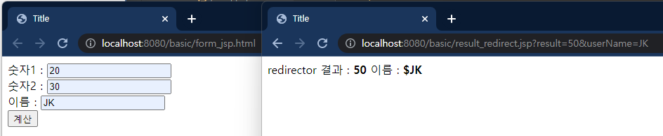 // response.sendRedirect("/basic/result_redirect.jsp?result=" + result + "&userName=" + encodeName);