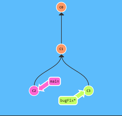 bugFix branch를 현재 사용자 위치(*)에 생성하며 사용자 위치를 생성된 bugFix로 이동