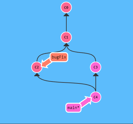 아래의 경우 사용자 위치(*)를 bugFix로 이동한 후 Merge를 진행하였는데,