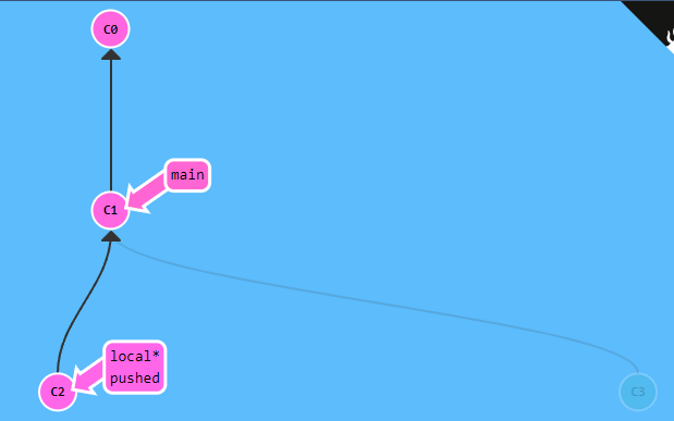 => 원격 저장소는 C2까지 갱신된 상태이고, 로컬 저장소의 C3은 C1을 기반으로 하기 때문