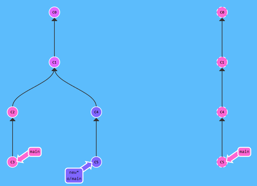 위와 같이 사용 시 C3 commit은 버려지고 local branch가 pushed branch로 이동된다.