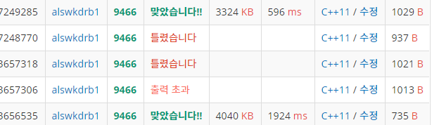 풀이 방식이 어떻게 보면 꼼수일 수도 있는 것 같은데 이전과 비교하면 메모리와 시간을 굉장히 많이 단축해서 뿌듯해서 올려본다.