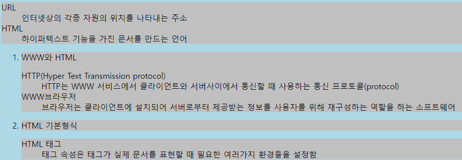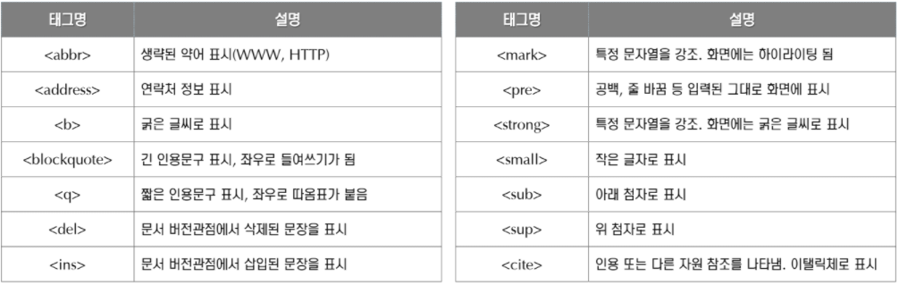 - 포맷팅 요소 : HTML의 텍스트에 적용하여 특별한 의미를 갖는 요소