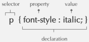 - property는 selector에서 바꾸고 싶은 요소 (color, font, width, height, border...)