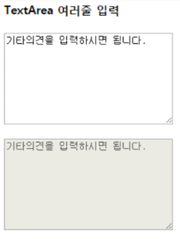 <p><textarea cols="30" rows="8" disabled>기타의견을 입력하시면 됩니다.</textarea></p>